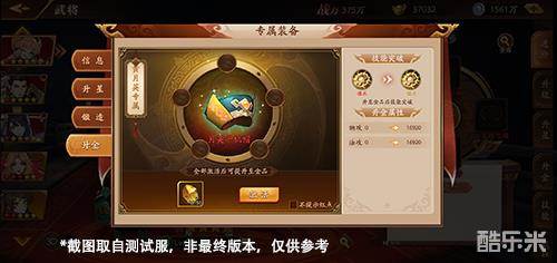 本次更新还将开启专属装备升金功能。专属装备升金后,专属装备技能效果加强,属性也将大幅提升。金装加持助武将爆发更强实力!