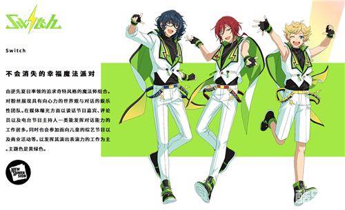 在由乐元素开发的音乐节奏手游《偶像梦幻祭2》中,Switch是个充满魔力的音乐组合。三位成员逆先夏目、青叶纺、春川宙为你带来了不会消失的幸福魔法派对!下面就来了解一下魔法师组合Switch吧!