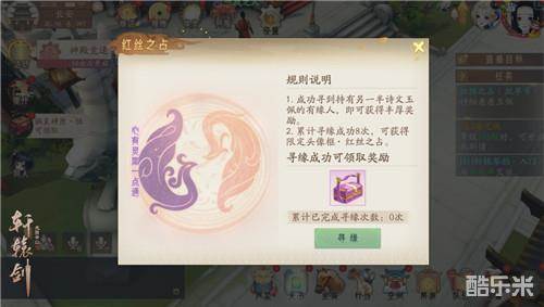 以诗会友,云山结缘。双十一将至,少侠是否已邂逅到自己的另一半?《轩辕剑龙舞云山》双十一主题活动“红丝之占”今日甜蜜开启,11月11日-11月24日,前往长安贾半仙处求签,即可根据签文提示寻找今日的有缘人,获得诗文玉佩。