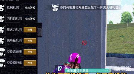 2、当然了,有惩罚就会有奖励,主持人可以随机选择一名特种兵投放礼包物资,点击投放会有一台小无人机将物资送到该特种兵身边!