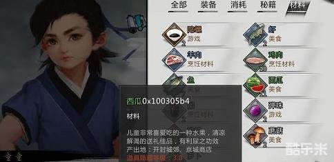 童子尿顾名思义,是和小朋友有关的。首先你需要获取一个西瓜,西瓜可以在京城的客栈卖食物的地方买一个。