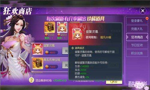 本次狂欢周,首先是大家喜闻乐见的限时狂欢商店盛大开放!这里拥有着各种珍稀道具,神王大人您是不是已经迫不及待地要增强实力了呢?那就快来参加狂欢活动吧,各种珍稀奖励等着你!