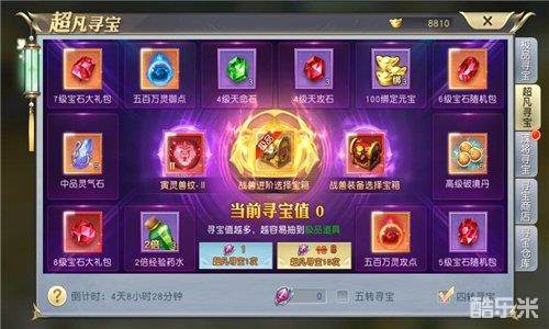 还有就是大家都喜欢的超凡寻宝本周也将限时开启,玩家可以消耗道具寻宝令进行四转寻宝或者五转寻宝,获得自己想要的极品奖励。值得一提的是,本次超凡寻宝的五转大奖更新为紫微星晶,可将红色特质提升至金色品质哦~