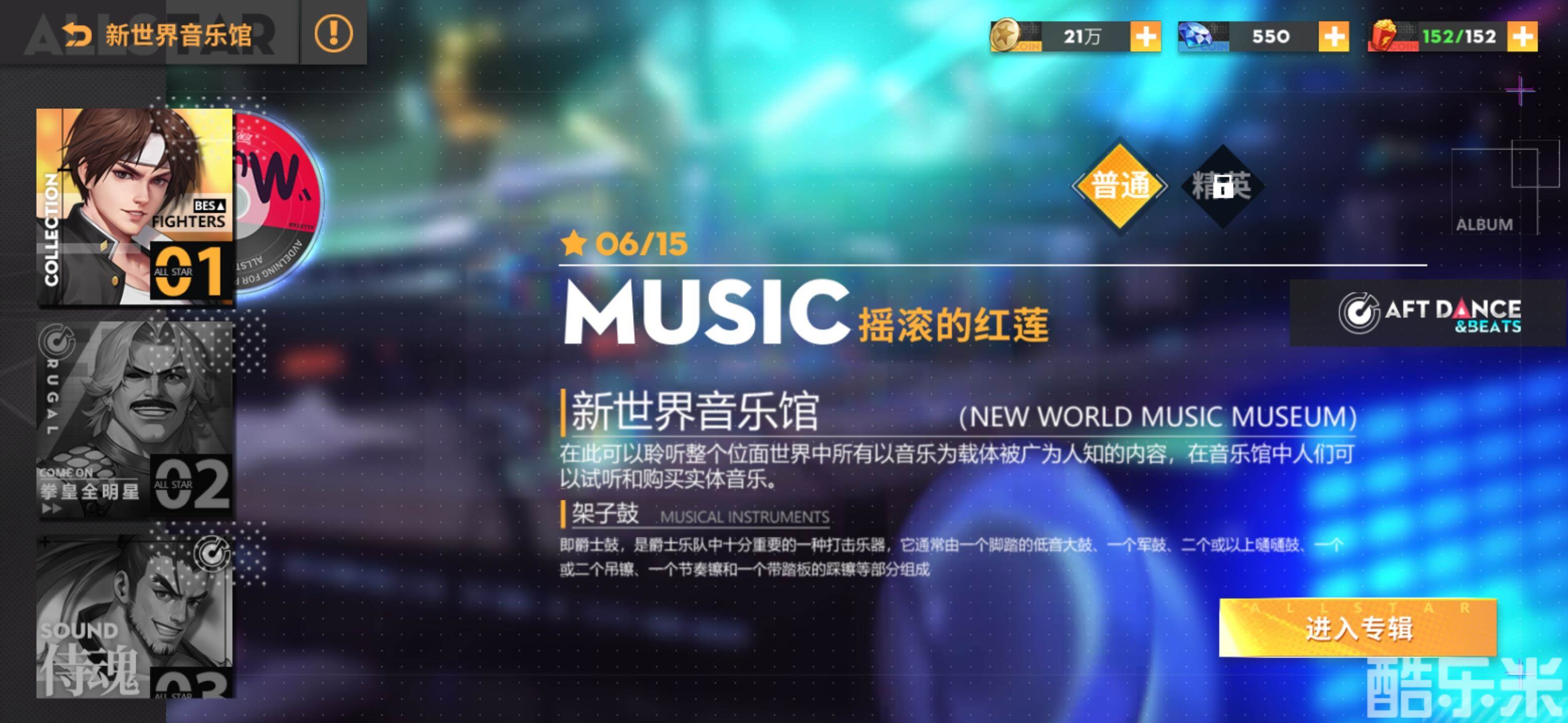 特色玩法“新世界音乐馆”和“黑市博物馆”,也将带给玩家新奇趣味的游戏体验,世界音乐馆里面有不同章节,每一个章节都蕴含一段充满乐器特色的BGM,当格斗家们解锁对应的章节后,就可以尽情的欣赏美妙音乐。