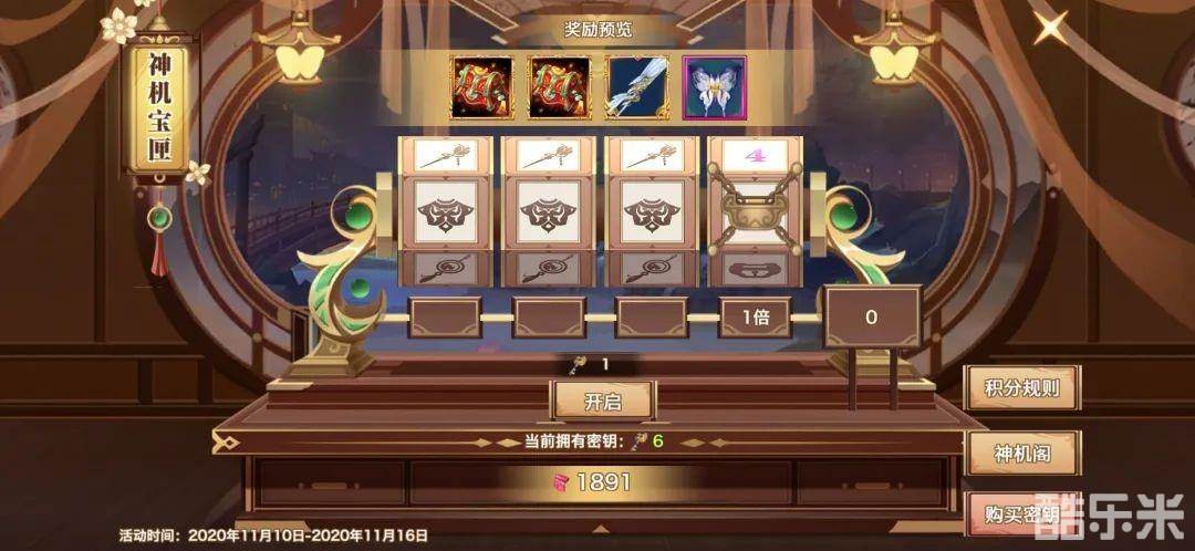只要参加11月10日~11月16日 期间限时开启的【神机宝匣】, 即可有机会获得联名外观【汉宫秋月】。还等什么,快上游戏,领取任务吧!