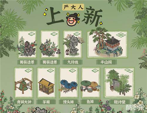 本次更新后严大人库存将新增「青铜大钟」、「九玲珑」、「蜀葵造景」、「半山阁」、「茅厕」等9种更具古江南风味的装饰建筑!