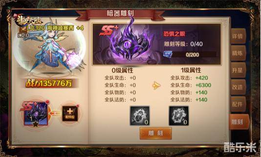 《新斗罗大陆》SS+暗器,除了对升星系统玩法进行优化升级外,还新增了雕刻系统。