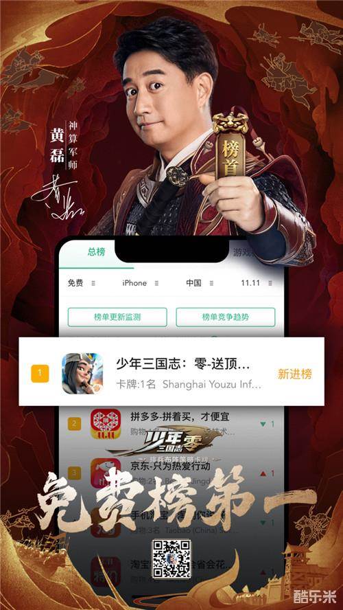 黄磊化身神算军师《少年三国志:零》公测首日苹果商店免费榜强