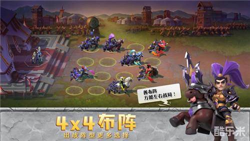 在空间上,玩家可以自由挑选军师,在4×4格棋盘上组合8个上阵武将,选择时机释放军师技能,最终将获得无穷多的策略组合可能性。兵将军师协同作战,探索以不同的组合搭配来完成同一场战斗,还原冷兵器时代巅峰对决的大场面。