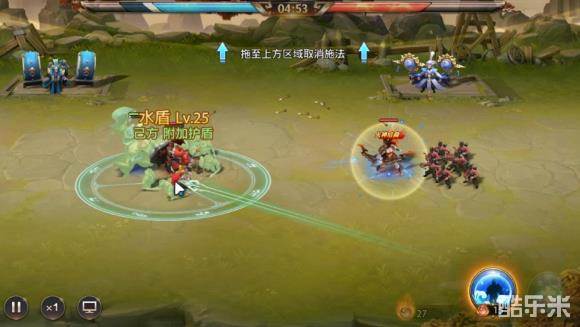 通关方法:默认布阵开局,当祝融身上光圈亮起后,立即释放“水盾”,挡住“火神后裔”,然后立即使用“活血术”给小兵回血,就能通关。