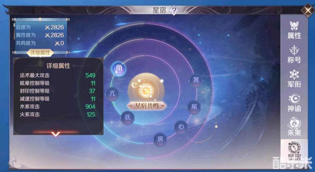 修真者们可以在角色属性详情面板上,查看自身的五行攻击和防御属性。角色所拥有的这些五行属性,皆是在角色-星宿系统中获得。
