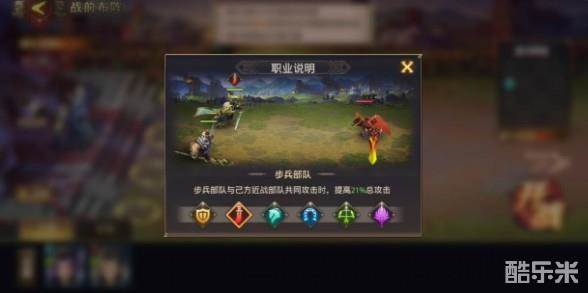 步兵:步兵部队与己方近战部队共同攻击时,提高21%总攻击。