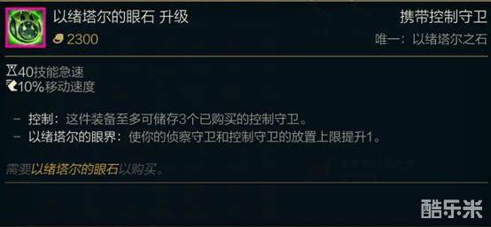 这件装备需要13级之后的【以绪塔尔的眼石】才可以购买,总价值2300金币。其中40技能急速价值大概1067金币,移动速度大约价值395金币。
