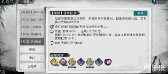 陆彦位置内容:广州城郊(你的先去找他,找完给他五块玄铁,十五块金子,三十块银子,这个任务才算正式开始)
