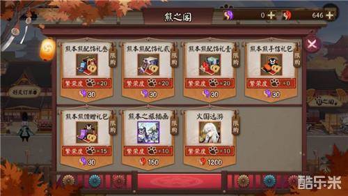 阴阳师还可在熊之阁中通过购买获得各种熊本特产和礼包,拥有熊本熊联动的系列商品的阴阳师将会直接获得该商品对应的繁荣度。