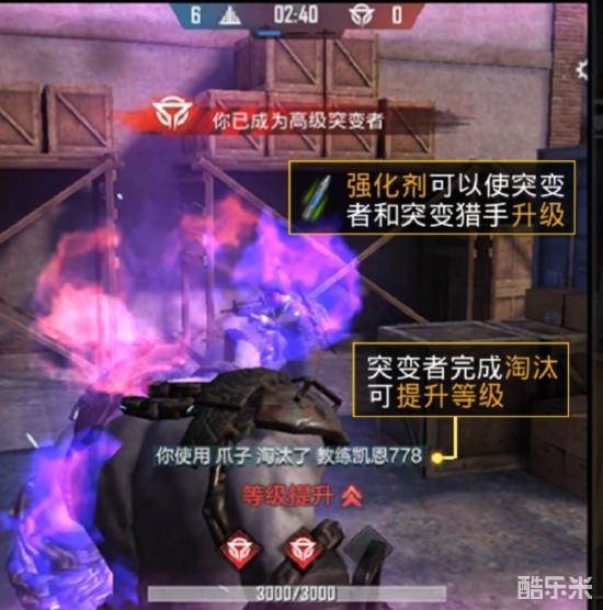 突变者使用强化剂或者感染玩家可以提升等级,等级提升血量也会提升,等级达到三级后游戏会出现进化补给点击使用进化补给可以进化成为炼狱突变者,等级上限三级。注:突变者无法滑铲,人类和突变猎手可以