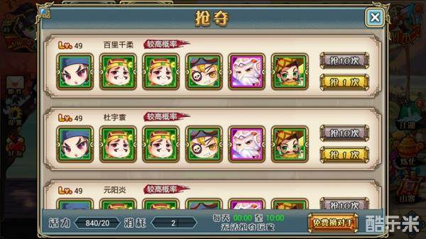 在《幻想水浒》里面,当玩家角色等级达到10级后,便会开启抢夺系统。玩家可以通过抢夺系统获取大量稀有装备。