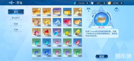 获得藏宝图后在背包中可以找到。