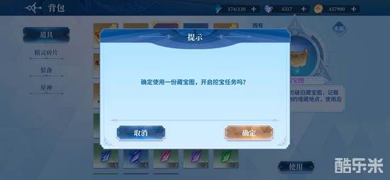 点击使用藏宝图,会提示开启挖宝任务,点击确定。