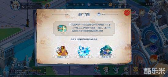 出现三个地点,三选一,到对应地图后点击右边的探测按钮,会探测是否有宝物。