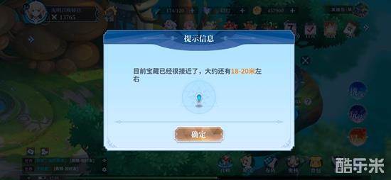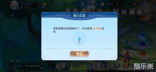 在宝藏对应的地图中点击探宝仪器,就能看到提示说宝藏距离我们还有多远。