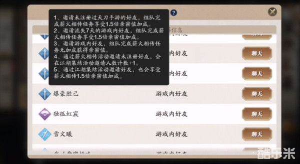 在天刀手游内,似乎只有好友度达到1500以上的才会被加入到邀请参与薪火相传活动的好友。