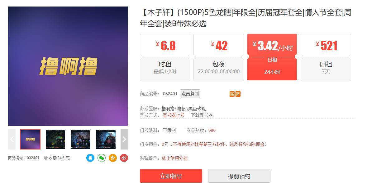 2.登录好之后,找到你喜欢的账号,选择好时间,点击租号。