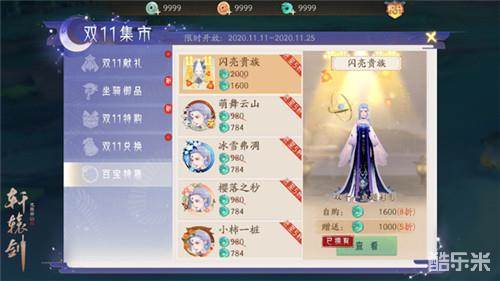 超值百宝集市限时开放,双十一主题彩影“闪亮贵族”及众多精美头像框、言匣上架热卖中,购买即享八折优惠,赠送好友更是低至半价!