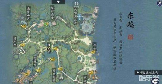 这个位置其实很好找的哦,就是玩家直接来到这个东越,然后在左边可以看到桃源盛景,直接来到这个传送点位置。