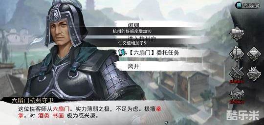 江湖中共有五座主城,当大侠们完成城内居民的委托任务时,即可提升主城好感度。其中,最主要的方式就是前往主城府和六扇门总舵,完成守卫官兵的委托任务,便可快速提升主城的好感度,同时还能增加仁义值哟!