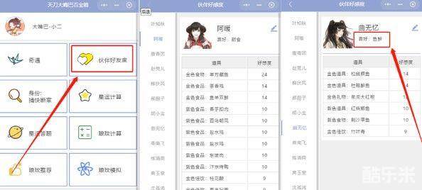 可以前往百宝箱的伙伴好感度进行翻阅查看这个NPC什么食物加好感度最多,考虑到碎银稀缺,如果你包裹里没有这些食物也没有关系,知道NPC的喜好给她赠送这个方向的食物/礼物总不会错;