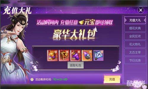 所谓的仙域盛会,即是太古仙域中全民参与的一项重大盛事,活动期间,玩家参与各类活动或是购买烟花均可获取狂欢值,狂欢值达到一定点数即可领取对应的奖励,包括盛会经验丹、坐骑兽魂、神兵石、破境丹、洗练宝箱、神器宝箱、武魂宝箱、宝石宝箱、经验药水等丰厚奖励!