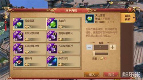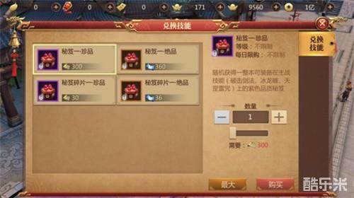 2、 副本商店中,使用协助点数(通过团队副本获得)兑换秘笈碎片,合成秘笈;