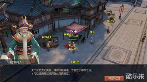 3、 将多余秘笈分解后,前往中州城秘笈商人处兑换“秘笈-珍品”礼盒获得新秘笈;