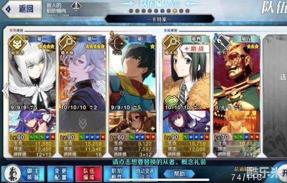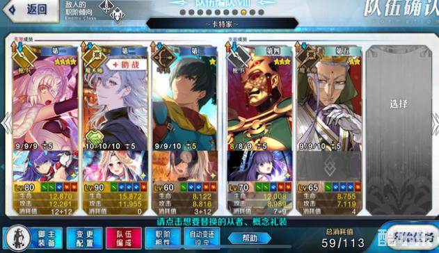 类似羽毛本的配置,类似羽毛本的操作。孔明可以换成陈宫,但是神祖要带满破虚数魔术。这边就不赘述