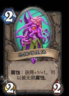 “疯狂的暗月马戏团”依旧带来了不少新的玩法。全新的关键字:腐蚀。效果为当你使用一张法力值消耗更高的卡牌时,你手中的腐蚀牌就会升级。提前做好计划,升级你的腐蚀牌,便可获得强劲的效果。