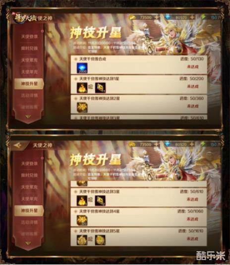 活动期间,升级天使千仞雪神技,提升至指定星级即可领取相应奖励!