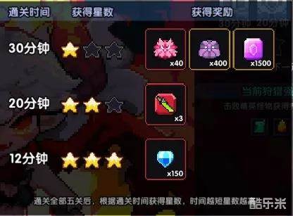 同一难度下的5个关卡挑战完毕后,将会根据总耗时来判定星级,总通关时长在12分钟之内即可获得三星评价。