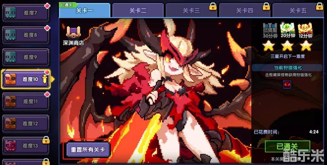 如果觉得自己选择的难度太高,可以点击重置所有关卡进行重新选择。