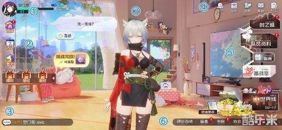 <界面介绍>进入游戏后主界面默认身处在时之屋中,中心位为玩家自设看板娘,并可自定义更换为任意一位玩家已拥有的角色或切换看板娘视角(拉近or调远)