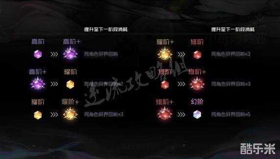 通过消耗相关角色的异界回响或品质卡(多次重复获取角色/卡牌),可对角色进行升阶,升阶将提升角色基础属性与专属卡牌能力