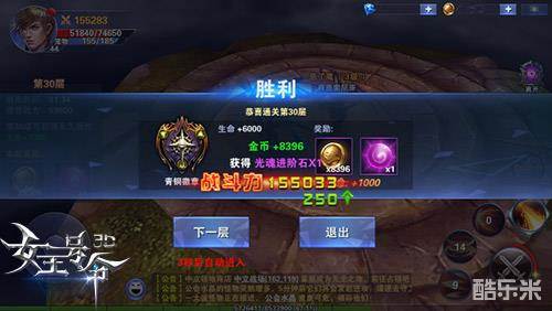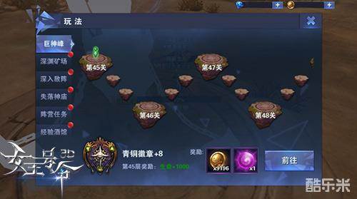 在《女王号令》的“巨神峰”玩法挑战之中,塞亚的勇士强者们每成功闯过一道关卡,都可以获得一次奖励。普通关卡的奖励包括金币、光魂进阶石以及宝石等等,而成功闯过第5、10、15层等特殊关卡,勇士强者们还可以额外获得青铜徽章升级的奖励,实现生命属性的提升!