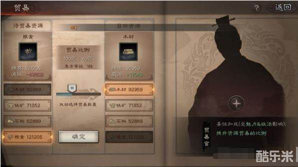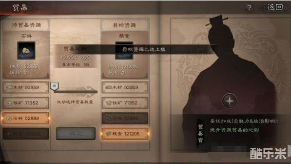 当选择用石料换粮食时,由于粮食已爆仓,进度条无法拉动。