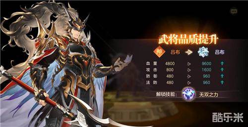 在游戏中,每一个角色在最后都能培养成无双的品阶,并且在属性上找齐。只要和你的阵容适配,在普通的武将都能成为主力。除此之外,游戏还有零损失的换将系统,所有养成资源,如等级、阶级、装备等都可以一键全部继承到新武将身上。