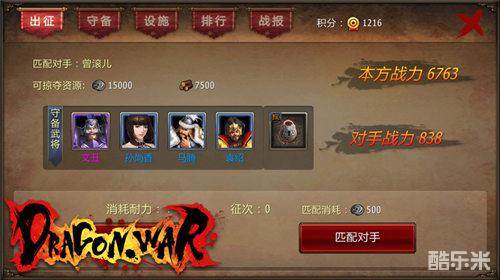 《战龙卸甲》争霸模式分为三个部分:匹配对战、武将防御以及阵营培养。对战顾名思义就是武斗,两军对决既是实力的比拼也是智慧的较量。系统会根据个人等级,自动匹配对手,手动确认后进入战斗界面。