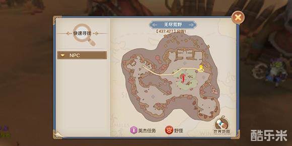 6.无尽荒野:打完最后英杰任务,按提示去地图中间绿洲找NPC接取任务,然后吃一条60烹饪鱼。(这里需要说下,打完最后一个英杰任务,会给你一个箱子,保底需要700绑钻才能开完,所以记得存绑钻)
