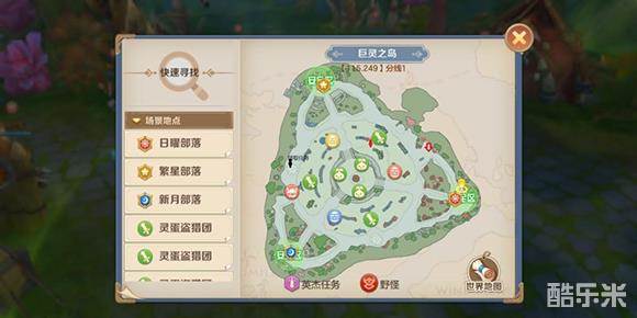 7.巨灵之岛:找食人花接取任务。在月亮左手出口往前走,然后去找两个铃,后面按任务提示即可。(和60地图一样,英杰任务会给一个箱子,保底需要1500绑钻)