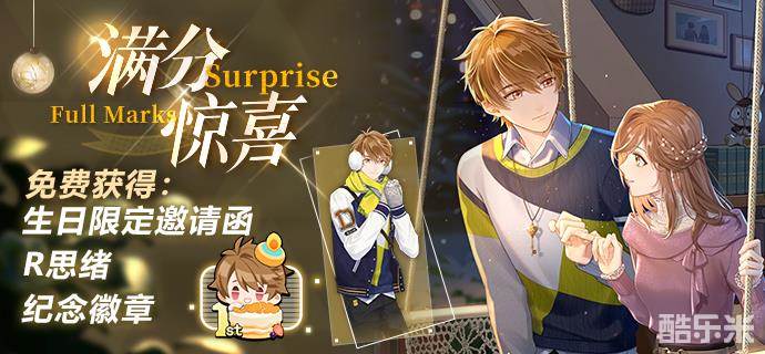 11月27日11:00起,「满分惊喜」活动即将开启,限时开放夏彦生日专属剧情,玩家完成活动任务可解锁夏彦生日会场布置,免费获得夏彦R思绪【静候】、女神之泪、未名晶片等丰富奖励。同时,完成限时任务、阅读专属剧情「庆祝生日」,还可获得生日邀请函【无猜】、活动纪念徽章【满分惊喜】等多重限定奖励。