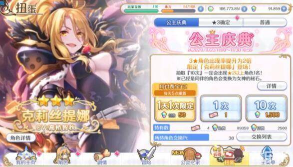 首先是关于本次卡池的出货率方面,因为抽卡的整体体量非常的大,所以出货率其实也不好说,肯定是有的人一发十连出货,而有的人却吃了一井。其实吧,我个人感觉《公主连结》吃井的概率其实应该不算特别高,最起码比起没有保底的《FGO》要好不少,毕竟不太稳定,但一般在百抽之内应该都能出货,这次克总的池子,以我个人的体感来看还是比较容易抽出来的。