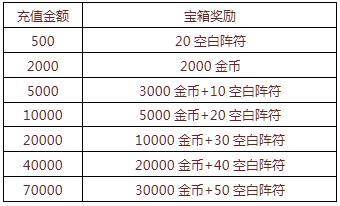 【活动内容】金币奖励满额返还,额外赠送大量空白阵符,天地水火,风雷山泽,奇门阵符,尽收囊中,一切尽在本期月末超值大放送。